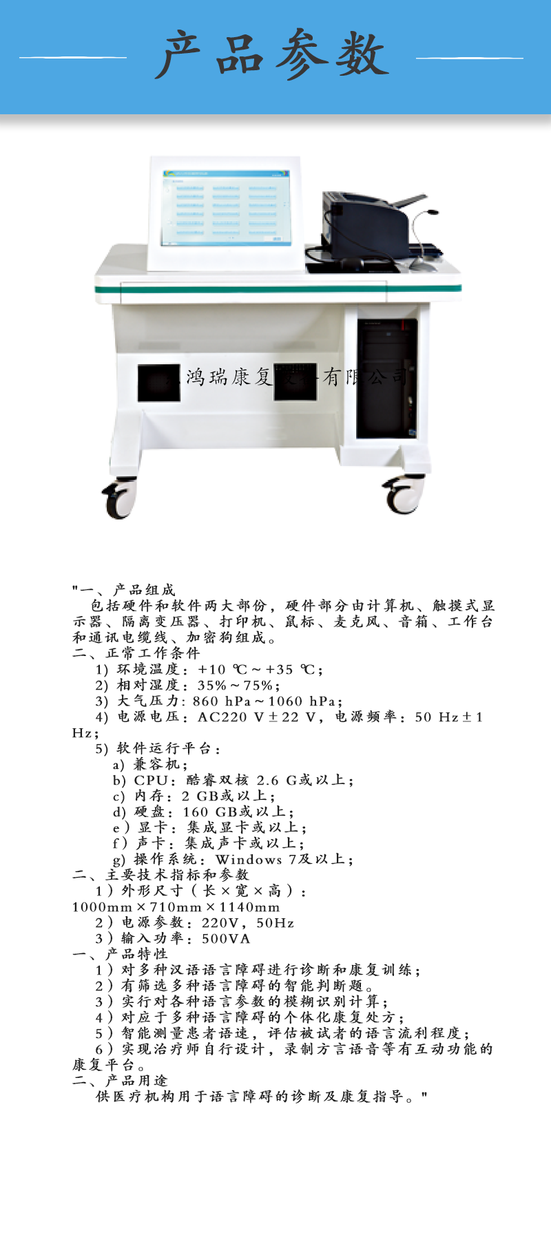 鸿瑞康复语言障碍诊断评估筛查康复训练设备语言障碍诊治仪