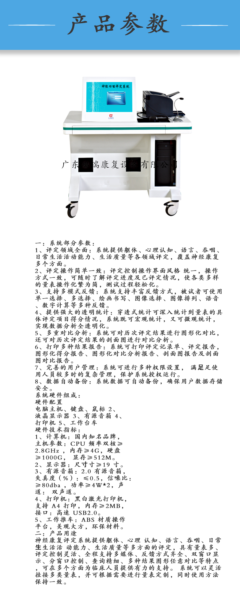 鸿瑞康复评估评定神经功能评估设备神经功能综合评定系统